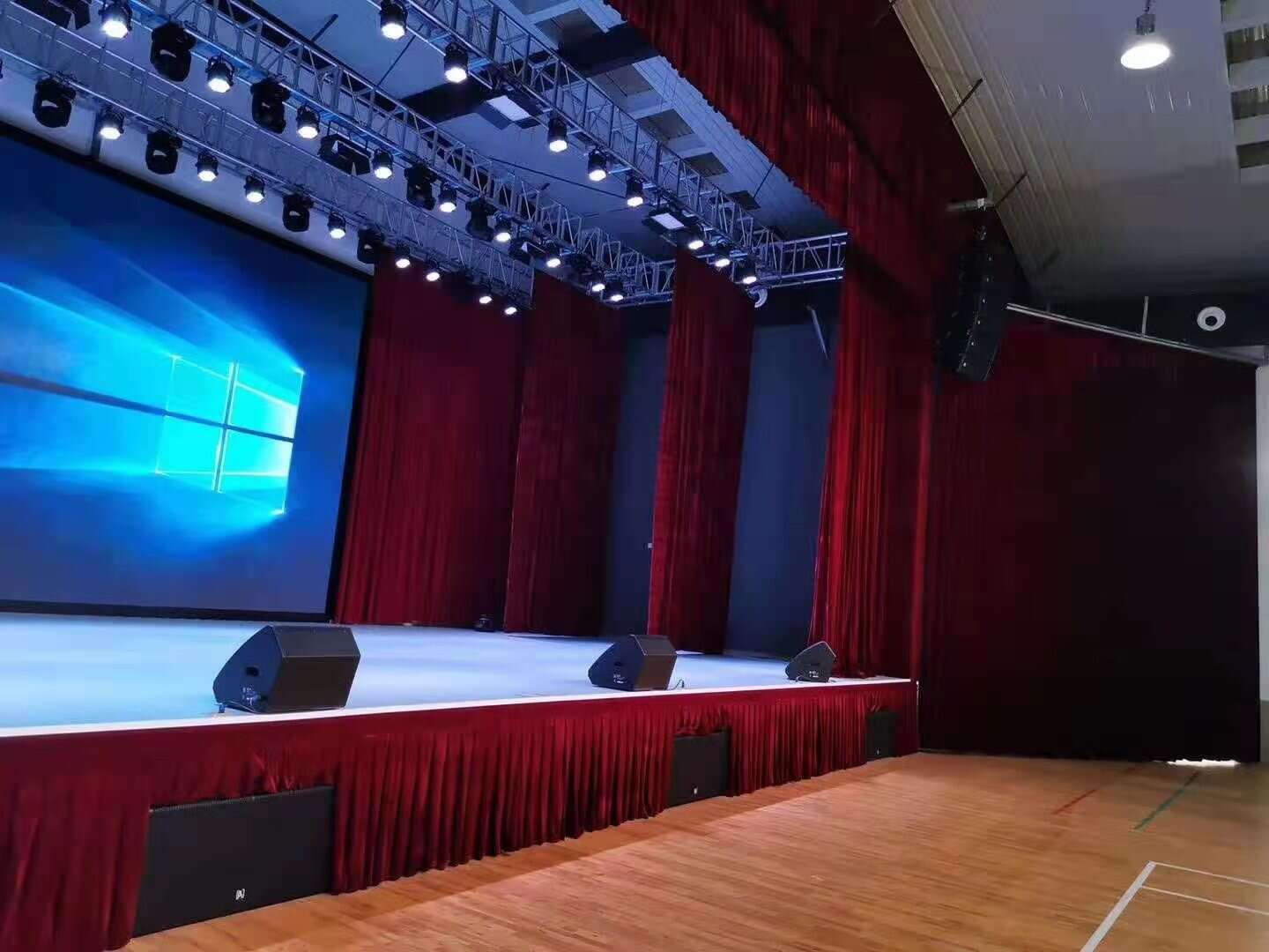幕布高:與舞臺臺口高平行的垂線高度為幕布高,用字母H表示,計量單位米(m)。